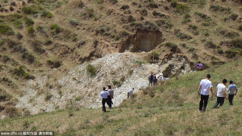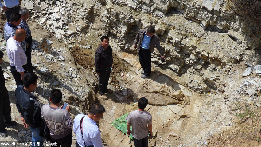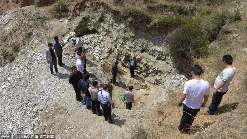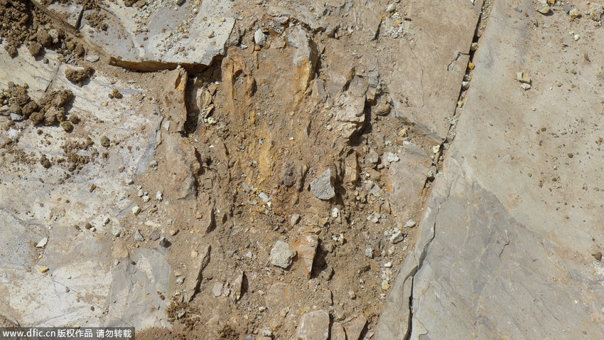 圖為“恐龍化石”發(fā)現(xiàn)現(xiàn)場(chǎng)。 王月 攝