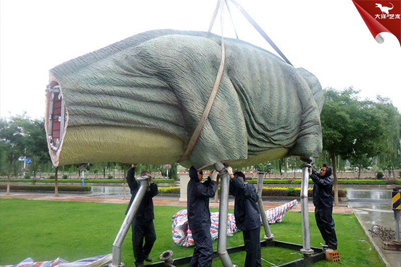 工人師傅現(xiàn)場(chǎng)為客戶安裝仿真腕龍