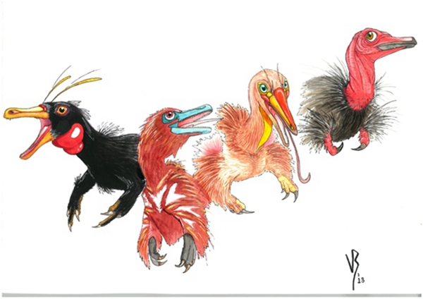 阿爾瓦雷斯龍類代表性物種復原圖,展現(xiàn)了前肢的有趣的演化歷程。ViktoRadermacher/繪